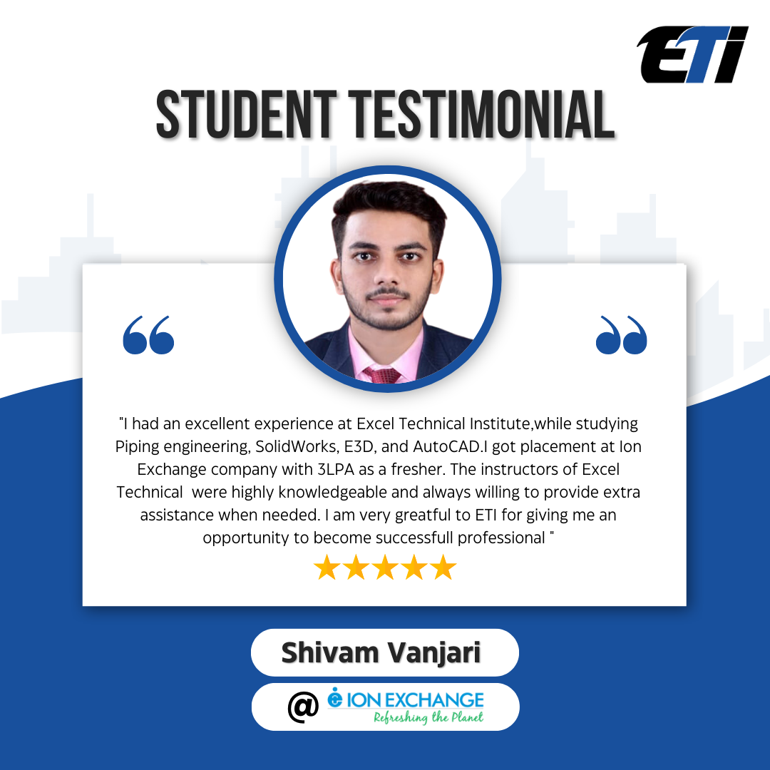 Excel Technical Institute (ETI) presents a REVIT MEP & SOLIDWORKS TRAINING COURSES, the Post Graduate Diploma in REVIT MEP & SOLIDWORKS TRAINING COURSES, aimed at delivering comprehensive knowledge and industrial exposure in the piping sector. This 4-month intensive program empowers fresh engineering graduates to accelerate their careers in various REVIT MEP & SOLIDWORKS TRAINING COURSE fields.